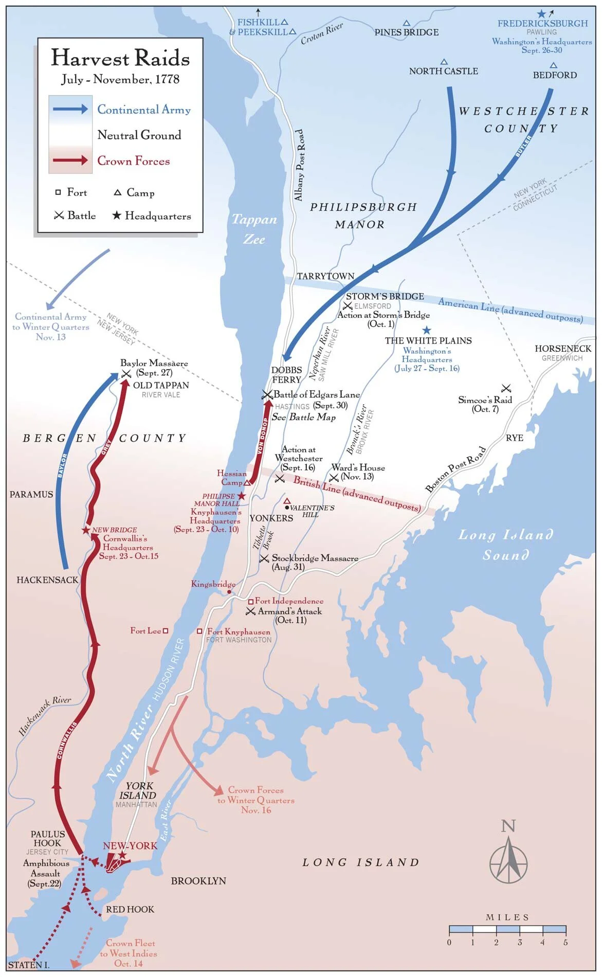 The Battle of Edgar’s Lane occurred as part of the campaign of 1778, when General Sir Henry Clinton moved the British forces from Philadelphia back to New York City and General George Washington returned to Westchester to observe and harass the enemy in preparation for a possible knockout blow. Each side sent out patrols on foraging and raiding missions, and these parties frequently skirmished with each other.